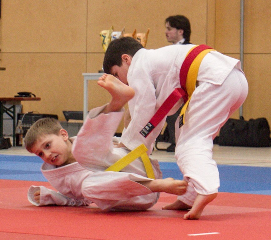 Anschließend übernahm die U11 das Geschehen auf der Matte. Mit 15 Startern stellte Kaufbeuren auch hier ein beeindruckend großes Aufgebot. Angetrieben von der lautstarken Unterstützung von Eltern, Großeltern und Freunden zeigten die jungen Judoka großen Kampfgeist und beeindruckende Nervenstärke.