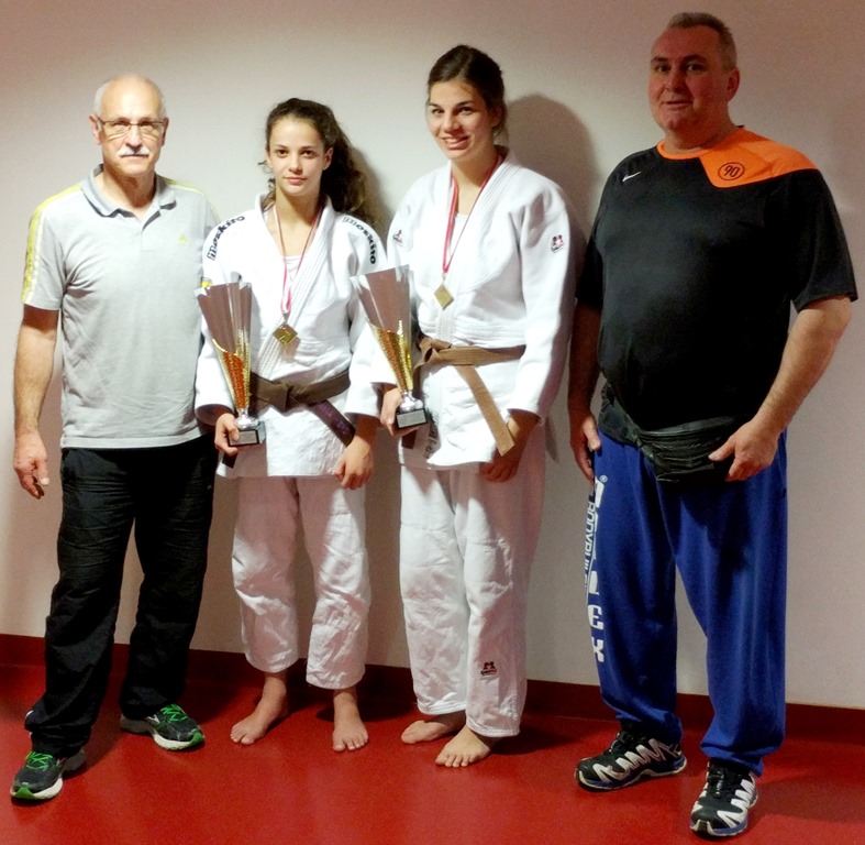 Abteilungsleiter Dieter Zimmermann, Nina Herb, Julia Lebsanft und Trainer Ladislav Cerman.