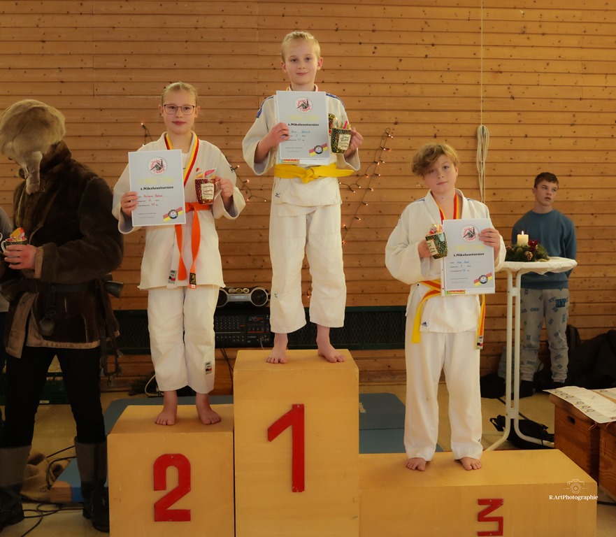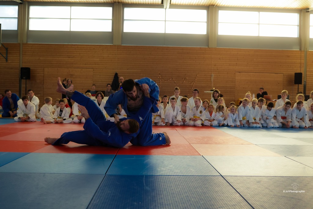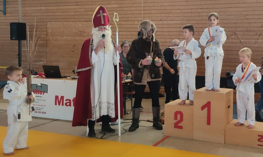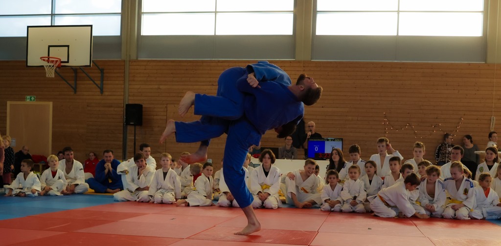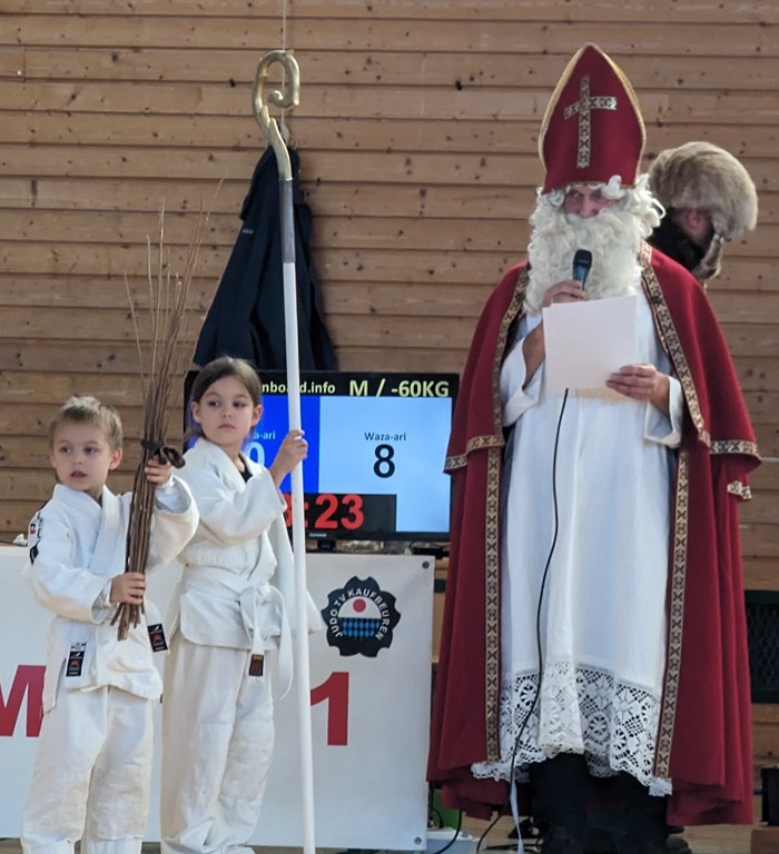 In der Pause zeigte der ehemalige Nationalkämpfer bei Europa und Weltmeisterschaften David Karle mit seinem Wettkampfgefährten Michael Zimmermann in einem mitreißenden Schaukampf Judo auf höchstem Niveau. Durch die perfekt ausgeklügelte Gruppeneinteilung musste jeder Teilnehmer mindesten dreimal kämpfen, um am Ende des Turnieres vom Nikolaus mit einer Urkunde mit Medaille und einem kleinen Weihnachtsgeschenk belohnt zu werden.