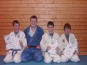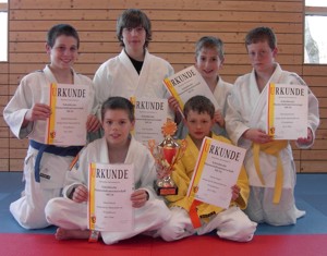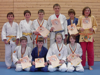 1.Platz Franziska Barnsteiner, -36kg 1.Platz Lutzenberger Martina, -44kg 1.Platz Hantzsche Patrick, -34kg U13 2.Platz Riedler Katja, -33kg 2.Platz Dill Willi, -38kg 3.Platz Michael Zimmermann, -42kg U15 1.Platz Diepold Thomas, -42kg 2.Platz Gierg Nelsy, -44kg (Errang den Technikerpokal) U17 2.Platz Franziska Schmid, -52kg 3.Platz Bauer Waldemar, -60kg Teilnehmer auf dem Foto zeigen die U13 und U15. |