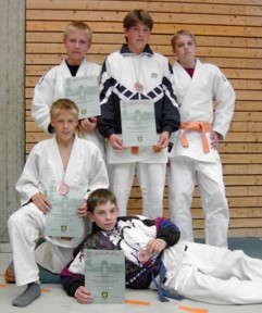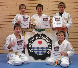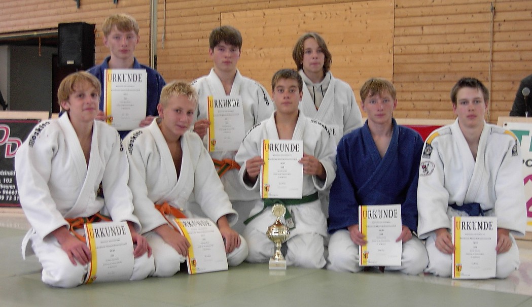 Mannschaft: -50kg Dobler Alexander -55kg Hegestweiler Matthias -60kg Hasselbach Dennis -66kg Hasselbach Max -73kg Bergmeier Josef Maximo -81kg Malewicz Harald 1.Platz TV Kaufbeuren 2.Platz JC Augsburg 3.Platz Sakura Sonthofen 3.Platz SF Friedberg |